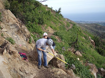 If it wasn't for the 30 or so volunteers that came out to help with this event the work could not have been completed- thank you to all that helped out. A special thanks goes out to the Santa Barbara Chicken Ranch for donating the best tri tip and chicken in town to feed all the hungry workers. The trails are going to need your help for a long long time so stay involved! Don't forget about the next "Happy Hour" on Tuesday April 27th to repair Rattlesnake-Tunnel Connector Trail. - Dave